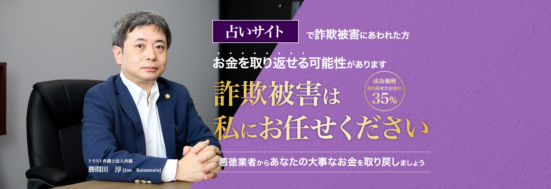 現在、「ステークホルダーとの信頼(Trust)関係の構築」をモットーに、金融・コンプライアンス・債権回収をメインに、都内で数多くの企業法務案件を手がけている。